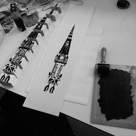 Using a spare proof from my Mini Print, I put together a quick mock up to show the idea, just using my computer monitor. The final will use a small screen concealed behind the print.